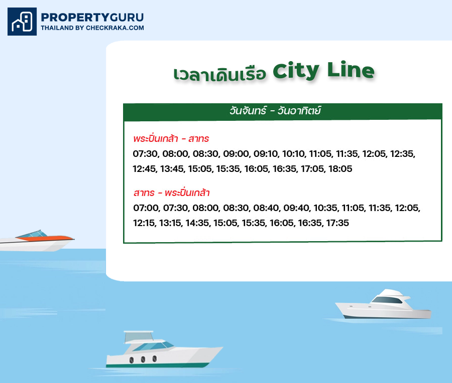 เวลาเดินเรือ สาย City ของทุกวัน เริ่มต้นตั้งแต่เวลา 07.30 - 18.05 น.