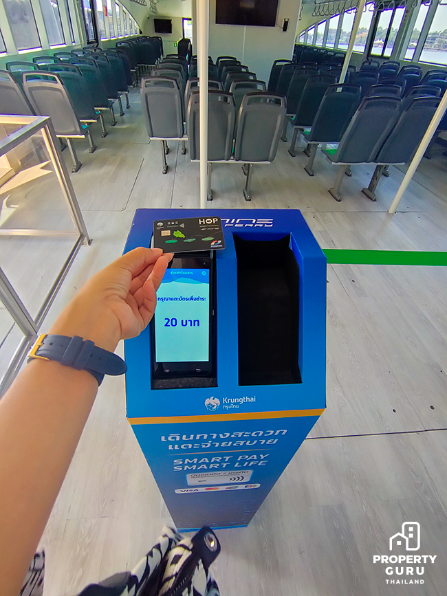 ชำระเงินที่เครื่องสแกนที่ตั้งอยู่ภายในเรือ