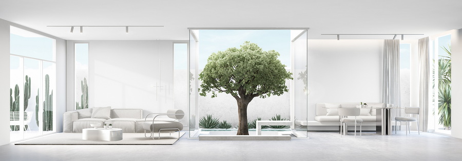 1. Private Courtyard : สวนส่วนตัวใจกลางตัวบ้าน ที่ไม่ว่าจะอยู่ในพื้นที่ส่วนไหนในบ้านก็สามารถมองเห็นด้