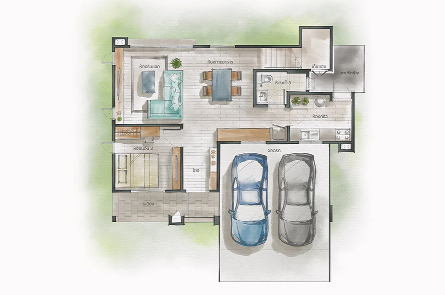 ฟังก์ชัน : 4 ห้องนอน 3 ห้องน้ำ 2 จอดรถ