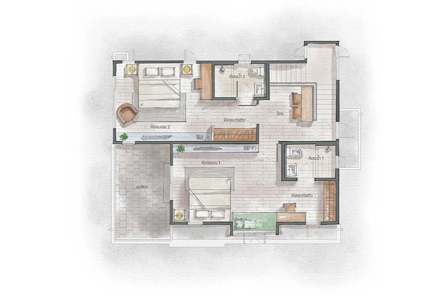 ห้องนอนหรือห้องอเนกประสงค์ที่ชั้น 1
