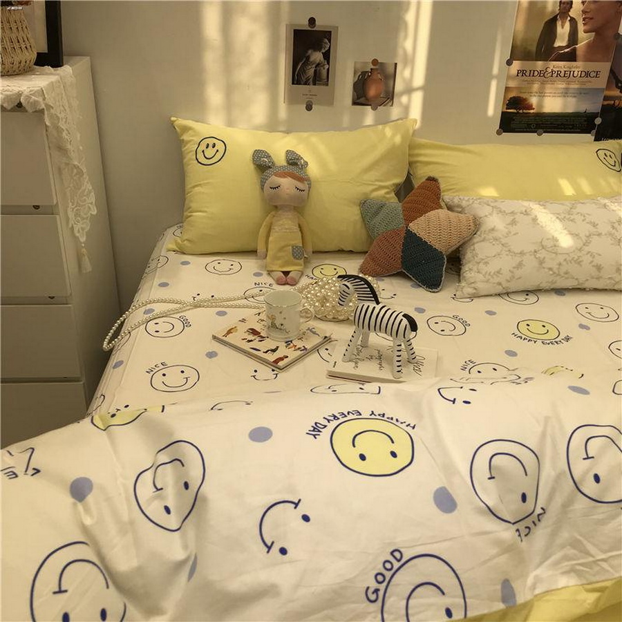 ชุดผ้าปูที่นอนผ้าฝ้ายสีขาวเหลือง รูปหน้ายิ้ม HAPPY EVERY DAY ราคา 1,500 บาท จากร้าน yeh_mthxy2