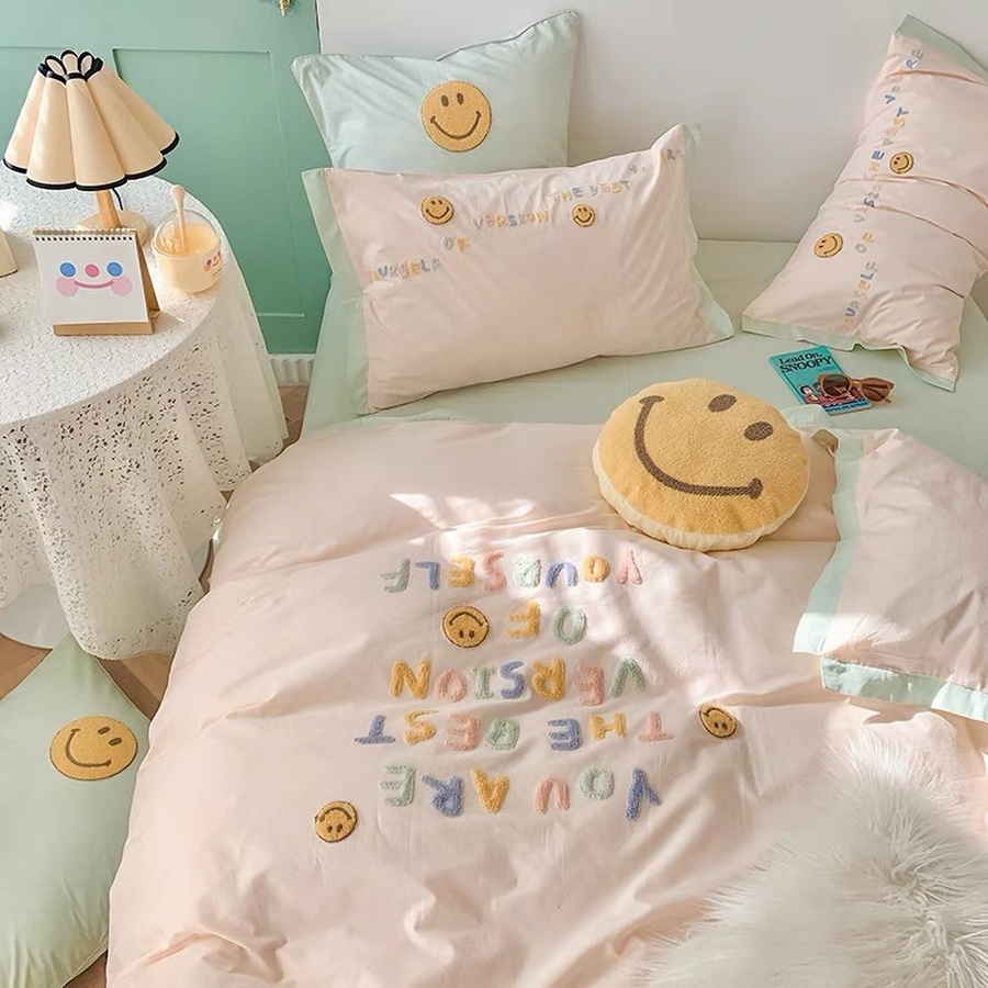 เซตผ้าปูที่นอน ปอกหมอน และปอดผ้านวม ลาย SMILEY โทนสีพาสเทลหวานๆ ราคาเริ่ม 3,390 - 4,5900 บาท จากร้าน haaus.co