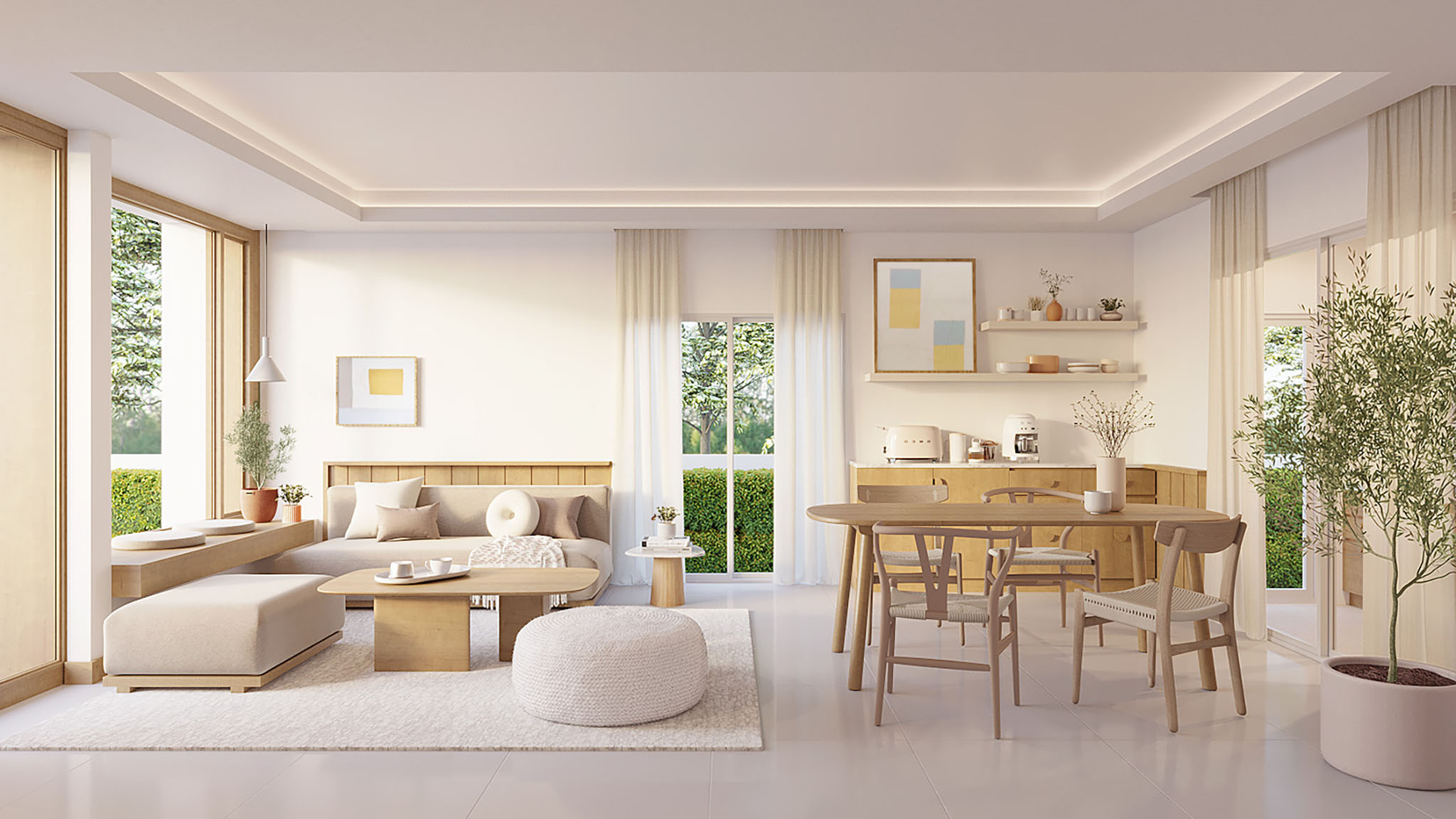 Nora (โนระ) ทาวน์โฮมรูปแบบใหม่สไตล์ Minimal Cozy มาพร้อมช่องแสงธรรมชาติขนาดใหญ่ ที่ทำให้บ้านดูโปร่งสว่าง และดีไซน์ฟังก์ชันที่คราฟท์ทุกรายละเอียด ดูเรียบง่าย อบอุ่น สบายตาด้วยโทนสีขาวและสีไม้ สมกับแรงบันดาลใจในการออกแบบที่ได้มาจากคาเฟ่ จึงเหมาะมากสำหรับกลุ่มคน Gen Y หรือกลุ่มคนรุ่นใหม่ที่กำลังมองหาบ้านหลังแรกสำหรับเริ่มต้นครอบครัว หน้าบ้านกว้างจอดรถได้ถึง 2 คัน แถมยังตอบรับ Eco Friendly ด้วย Zero Waste System ระบบคัดแยกขยะทุกหลัง และ Food Waste Composter รักษ์โลก