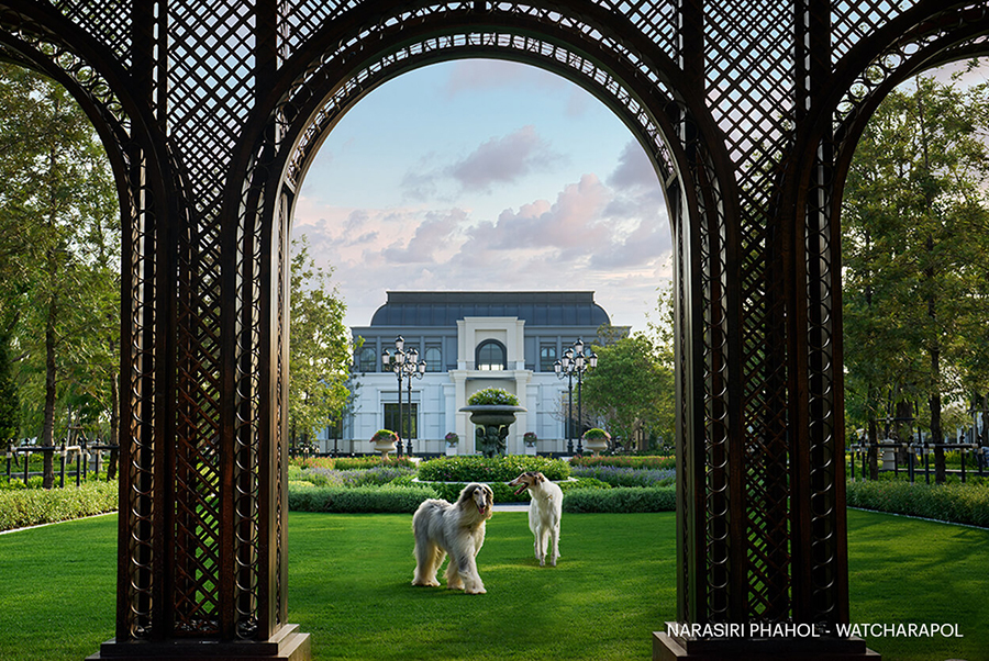 ส่วนกลางของที่นี่สวยอลังการเหมือนไม่ได้อยู่ที่ประเทศไทย ซึ่งที่รู้สึกแบบนั้นเพราะว่าผังโครงการออกแบบให้สอดคล้องกับผังเมืองกรุงปารีส สถาปัตยกรรมและงานประติมากรรมอันเป็นเอกลักษณ์ ตั้งแต่บริเวณทางเข้าโครงการออกแบบให้มีความสง่างาม ประติมากรรมสิงโตมีปีก (Lelion De Victoire) ที่สื่อถึงความก้าวหน้าในด้านธุรกิจและความเจริญรุ่งเรือง