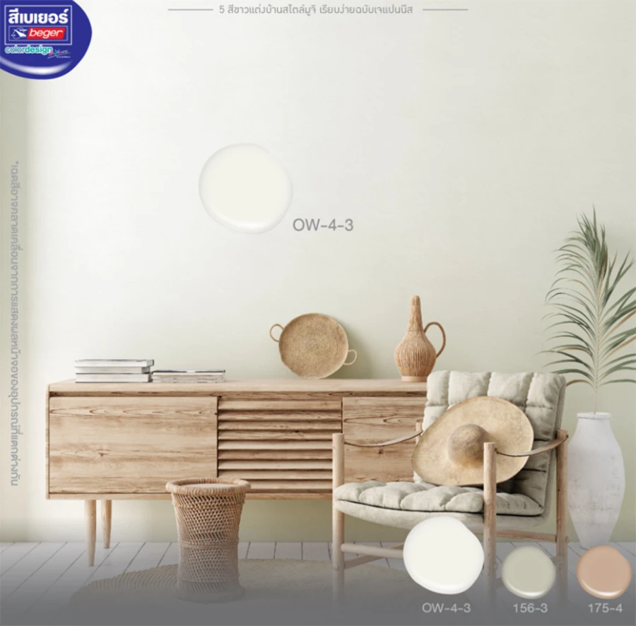 อยากได้ห้องแบบมูจิมูใจ ต้องสีนี้ขาวติดครีมนิดๆ ทำให้พื้นที่ดูอบอุ่น โปร่งสบาย