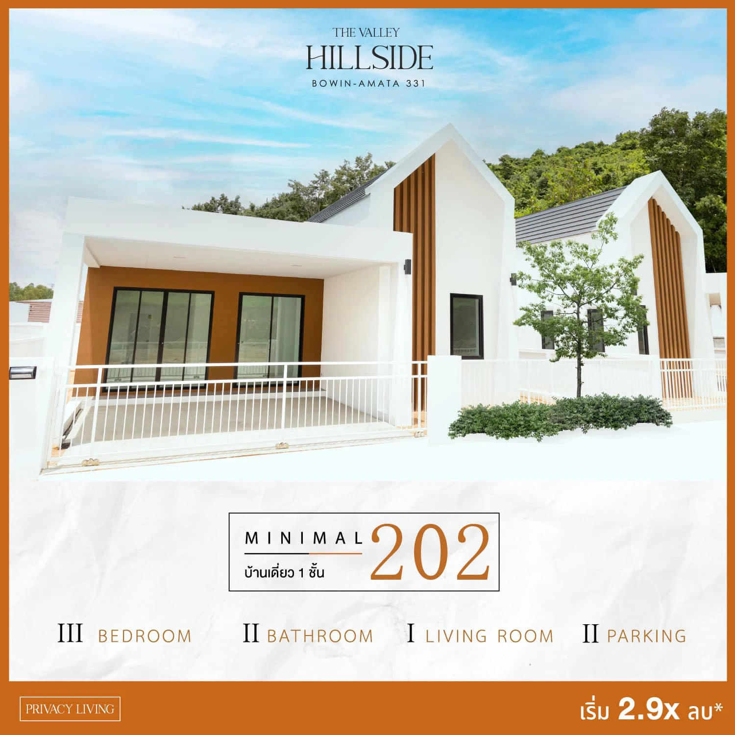 น้อยแต่มาก (Less is more) เรียกได้ว่าเป็นคำจำกัดความของโครงการ เดอะ วัลเลย์ ฮิลล์ไซด์ (The Valley Hillside) ได้เลย เพราะหน้าตาเรียบๆ โดนใจสายมินิมอล แต่แท้จริงแล้วแฝงไปด้วยดีเทลมากมาย ท่านใดที่ทำงานอยู่นิคมย่านบ่อวิน-อมตะ ที่นี่ถือเป็นบ้านที่พร้อมให้คนรุ่นใหม่ได้ลงหลักปักฐาน มีชุมชน สภาพแวดล้อม และสาธารณูปโภคที่สนับสนุนการอยู่อาศัยในทุกๆ ด้าน ที่สำคัญสร้างเสร็จพร้อมอยู่แล้ว