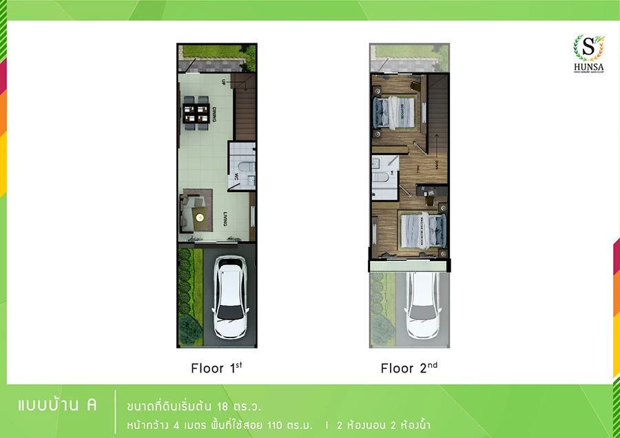 แบบบ้าน A หน้ากว้าง 4 เมตร พื้นที่ใช้สอยขนาด 110 ม.