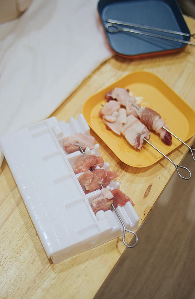 ใครสายขี้เกียจ อุปกรณ์ทุ่นแรงให้คุณเสียบวัตถุดิบต่างๆ ได้ง่ายขึ้น เพียงแค่นำวัตถุดิบวางตามช่อง พับฝาลง จากนั้นเสียบไม้เข้าไป นอกจากเสียบวัตถุดิบสำหรับทำหม่าล่าแล้ว ยังใช้เสียบลูกชิ้นหรือบาร์บีคิวได้อีกด้วย