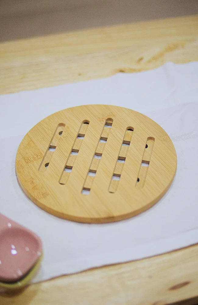 ไอเท็มสำคัญที่บางคนอาจมองข้ามไป อย่าลืมแผ่นรองหม้อไว้กันไม่ให้ความร้อนทำลายโต๊ะของเรา แนะนำแผ่นรองหม้อไม้ไผ่ ผลิตจากวัสดุธรรมชาติ ลดการสัมผัสระหว่างภาชนะที่ร้อนกับผิวโต๊ะ และตัวร่องบนแผ่นช่วยระบายความร้อนได้ดี