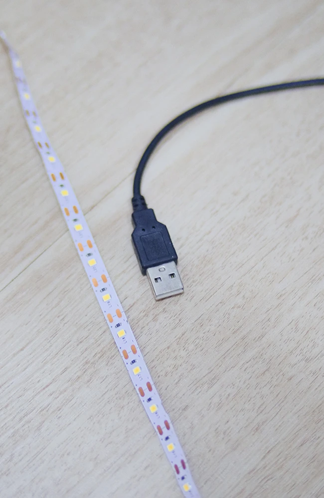 นำเทปไฟเส้นติดหลังโทรทัศน์ และเสียบสาย USB กับช่องด้านหลังโทรทัศน์ของเรา เวลาเปิดโทรทัศน์แสงไฟ LED บนเทปก็จะเปิดอัตโนมัติ ช่วยเพิ่มบรรยากาศเวลาดูหนังตอนกลางคืน