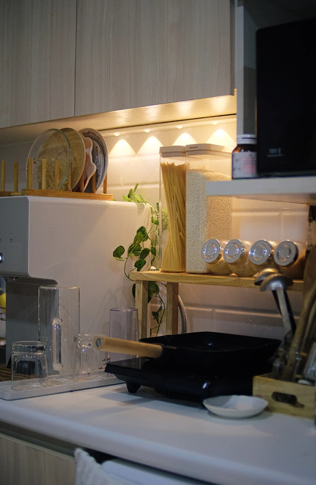 แค่มีแสงตรงเคาน์เตอร์ครัว ก็ช่วยเพิ่มความเรียบหรูให้ห้องได้มากขึ้นหลายเท่า ใช้ไฟเซนเซอร์ LED ไร้สายแบบนี้ติดตั้งเองได้ไม่ยาก ด้วยแผ่นแม่เหล็กทำให้เราสามารถดึงออกไปชาร์จได้ มีหลายขนาดให้เลือก ปรับแสงไฟได้ ถ้าคืนไหนเราอยากเปิดไฟสร้างบรรยากาศไว้ยาวๆ สามารถเปิดโหมด Always-on ได้ หรือจะให้เซนเซอร์ทำงานแค่ช่วงกลางคืนก็ได้เช่นกัน