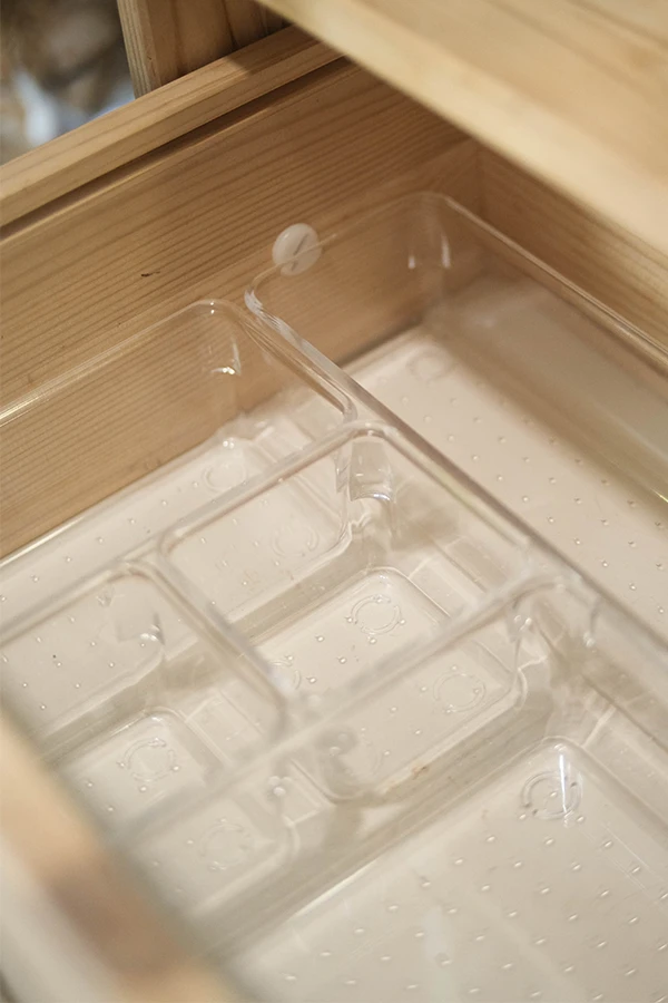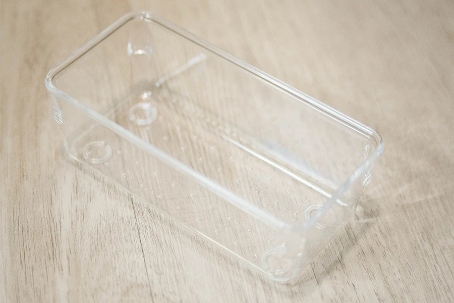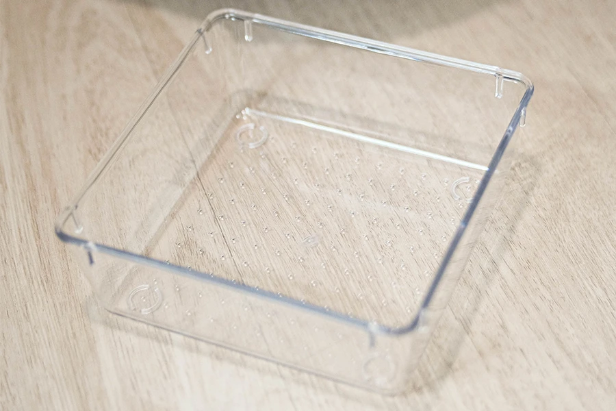 กล่องพลาสติกใสและแข็งแรงที่มีให้เลือกหลากหลายขนาดตั้งแต่ใหญ่ไปจนถึงอันเล็กกว่า 10 cm นอกจากนี้ยังสามารถนำกล่องหลายๆ ขนาดมาต่อรวมกันและวางในลิ้นชักได้อีกด้วย สามารถปรับแต่งขนาดได้ด้วยการวัดขนาดลิ้นชักและเลือกกล่องแต่ละชิ้นมาจัดวางให้ได้ขนาดเดียวกับลิ้นชักที่เรามี