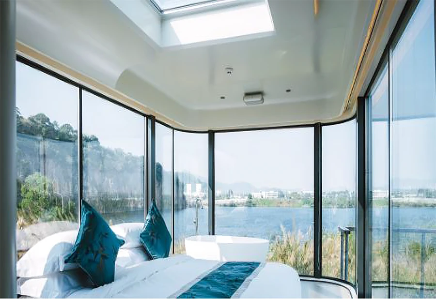 2. ดีไซน์โดดเด่น เห็นวิวพาโนรามา : รูปแบบเรียบง่ายแต่ล้ำสมัย สไตล์อวกาศ ออกแบบให้มีหน้าต่างบานใหญ่เทควิวธรรมชาติได้เต็มตาแบบ 270 องศา ให้ความรู้สึกได้ใกล้ชิดกับธรรมชาติมากยิ่งขึ้น และสัมผัสความงดงามของธรรมชาติได้ทุกเวลา
