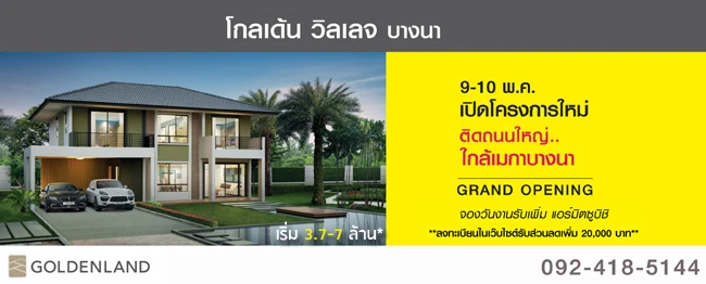 GRAND OPENING โกลเด้น วิลเลจ บางนา-กิ่งแก้ว 9-10 พ.ค. นี้ เริ่มต้น 3.7-7 ล้านบาท*
