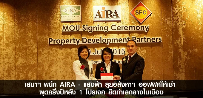 เสนาฯ ผนึก AIRA - แสงฟ้า ลุยอสังหาฯ ออฟฟิศให้เช่า ผุดครึ่งปีหลัง 1 โปรเจค ยึดทำเลกลางในเมือง