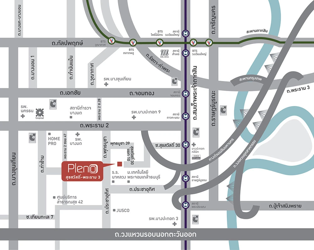 ที่ตั้งโครงการ พลีโน่ สุขสวัสดิ์ - พระราม 3 (