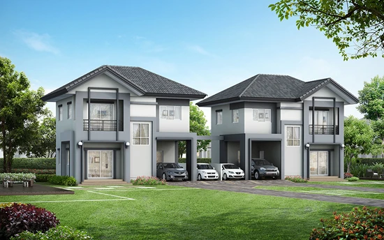 1. บ้าน "Pine" บ้านเดี่ยว 2 ชั้น พื้นที่ใช้สอย 148 ตร.ม. ขนาดพื้นที่เริ่มต้นที่ 50 ตร.วา ขึ้นไป 3 ห้องนอน 2 ห้องน้ำ จอดรถ 2 คัน