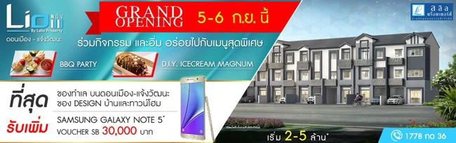 Grand Opening ไลโอ นอฟ ดอนเมือง - แจ้งวัฒนะ 5-6 ก.ย. นี้ บ้านและทาวน์โฮมใหม่ เริ่ม 2-5 ล้าน*