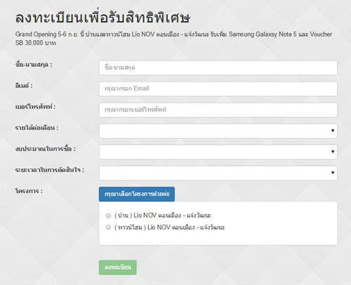 พิเศษรับเพิ่ม Samsung Galaxy Note 5 และ Voucher SB 30,000 บาท สำหรับท่านที่สนใจ สามารถกรอกข้อมูลลงทะเบียนเพื่อรับสิทธิพิเศษได้ที่ทางเว็บไซต์ของลลิล พร็อพเพอร์ตี้