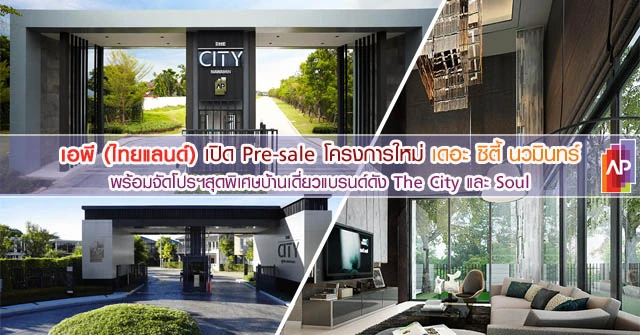 บริษัท เอพี (ไทยแลนด์) จำกัด (มหาชน) เตรียมเปิดตัวบ้านเดี่ยวโครงการใหม่ "เดอะ ซิตี้ นวมินทร์" พร้อมยกทัพโครงการบ้านเดี่ยว แบรนด์ดัง ทำเลศักยภาพมาจัดโปรโมชั่นพิเศษ อาทิ The City และ Soul พร้อมเปิดให้ลงทะเบียนรับสิทธิพิเศษและรับข้อเสนอพิเศษก่อนใครผ่านเว็บไซต์ โดยโครงการที่นำมาจัดโปรโมชั่นพิเศษมีดังต่อไปนี้