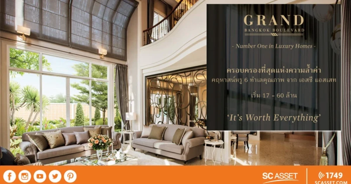 บริษัท เอสซี แอสเสท คอร์ปอเรชั่น จำกัด (มหาชน) นำ 6 โครงการหรู ทำเลคุณภาพ จัดงาน "It's worth everything" โดยหนึ่งในโครงการล่าสุด คือ โครงการ แกรนด์ บางกอก บูเลอวาร์ด ราชพฤกษ์-พระราม 5 ขนาดพื้นที่ 25-2-3.7 ไร่ มูลค่าโครงการ 1,500 ล้านบาท โครงการพัฒนาภายใต้คอนเซปต์ 1 โครงการ 1 แรงบันดาลใจ เป็นคฤหาสน์ 3 ชั้น สไตล์ Modern Luxury จำนวนเพียง 41 หลัง ท่ามกลางสังคมที่เป็นส่วนตัว ราคาเริ่มต้น 30 ล้านบาท มีฟังก์ชั่นที่ครบครัน ขนาด 5 ห้องนอน 6 ห้องน้ำ พร้อมที่จอดรถ 4 - 5 คัน และพื้นที่ใช้สอยภายในที่เพิ่มขึ้น ประกอบไปด้วยจุดเด่นที่แตกต่าง ได้แก่ Grand Double Volume Living Room, Grand Courtyard บริเวณชั้นสอง และนวัตกรรมสำหรับผู้สูงอายุ มีบ้านตัวอย่าง 2 แบบ ได้แก่