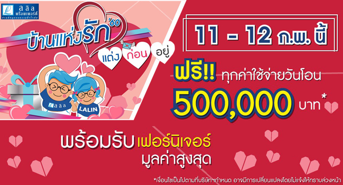 ลลิล จัดหนักส่งโปรโมชั่นหวาน "บ้านแห่งรัก" แต่งก่อนอยู่ ในวันที่ 11-12 ก.พ.นี้ ฟรี!! ทุกค่าใช้จ่ายวันโอน