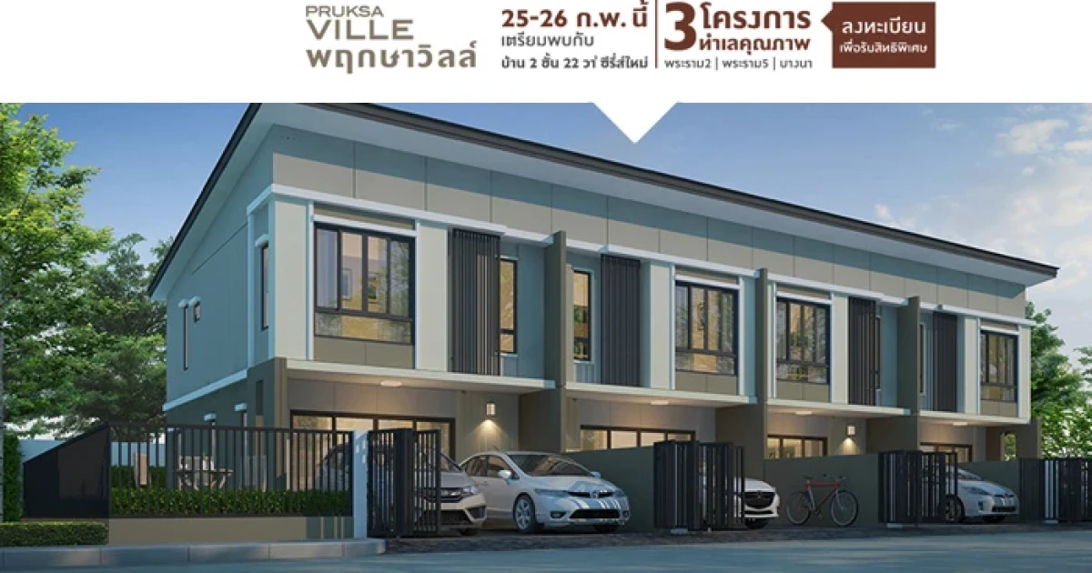 เตรียมพบกับ พฤกษาวิลล์ 3 โครงการ ทำเลคุณภาพ บ้านซีรีส์ใหม่ ทาวน์โฮม 2 ชั้น 25-26 กพ. นี้