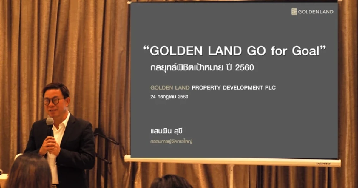 คุณปิง หรือ คุณแสนผิน สุขี กรรมการผู้จัดการใหญ่ บริษัท แผ่นดินทอง พร็อพเพอร์ตี้ ดีเวลลอปเม้นท์ จำกัด (มหาชน) หรือ โกลเด้นแลนด์ เปิดเผยผลการดำเนินงานในครึ่งปีแรกว่า บริษัทมียอดขายแล้ว 11,000 ล้านบาท จากเป้าหมายที่ตั้งไว้ 6,600 ล้านบาท หรือสูงกว่าเป้าหมาย 67% ทั้งนี้มีผลมาจาก การเปิด 5 โครงการใหม่ ที่มียอดขายเกินเป้าหมาย