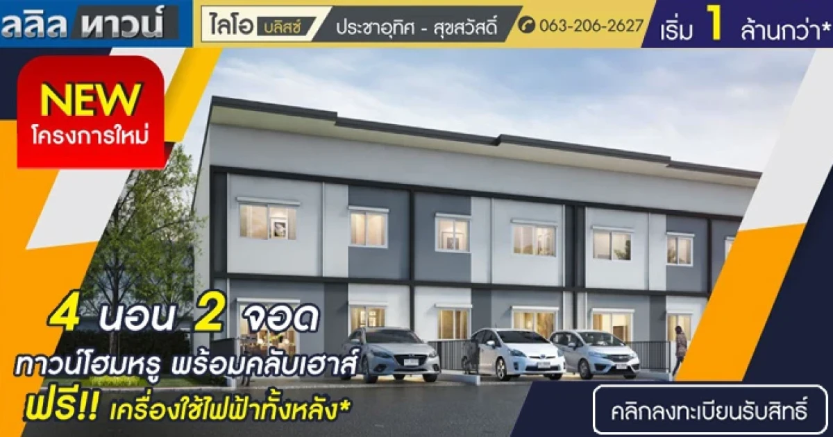 ลลิลทาวน์ ไลโอ บลิสซ์ ประชาอุทิศ-สุขสวัสดิ์ ทาวน์โฮมหรูพร้อมคลับเฮ้าส์โครงการใหม่ เริ่ม 1 ล้านกว่า*