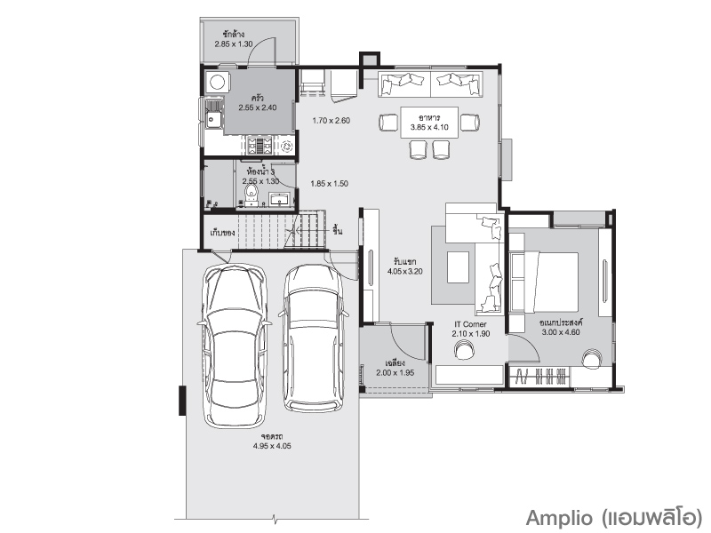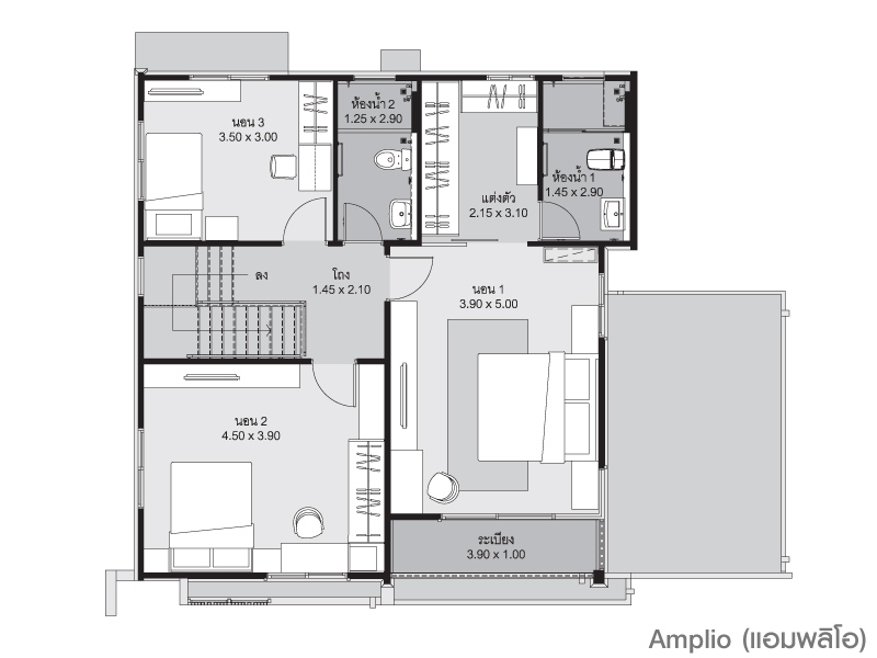 4. Amplio - บ้านเดี่ยว พื้นที่ใช้สอย 183 ตร.ม. ขนาดที่ดินตั้งแต่ 70 ตร.วา 4 ห้องนอน 3 ห้องน้ำ 1 ห้องครัว พร้อมที่จอดรถ 2 คัน