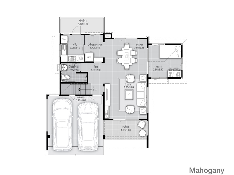 3. Mahogany - บ้านเดี่ยว พื้นที่ใช้สอย 173 ตร.ม. ขนาดที่ดินตั้งแต่ 66 ตร.วา 4 ห้องนอน 3 ห้องน้ำ 1 ห้องครัว 1 ห้องพักผ่อน พร้อมที่จอดรถ 2 คัน