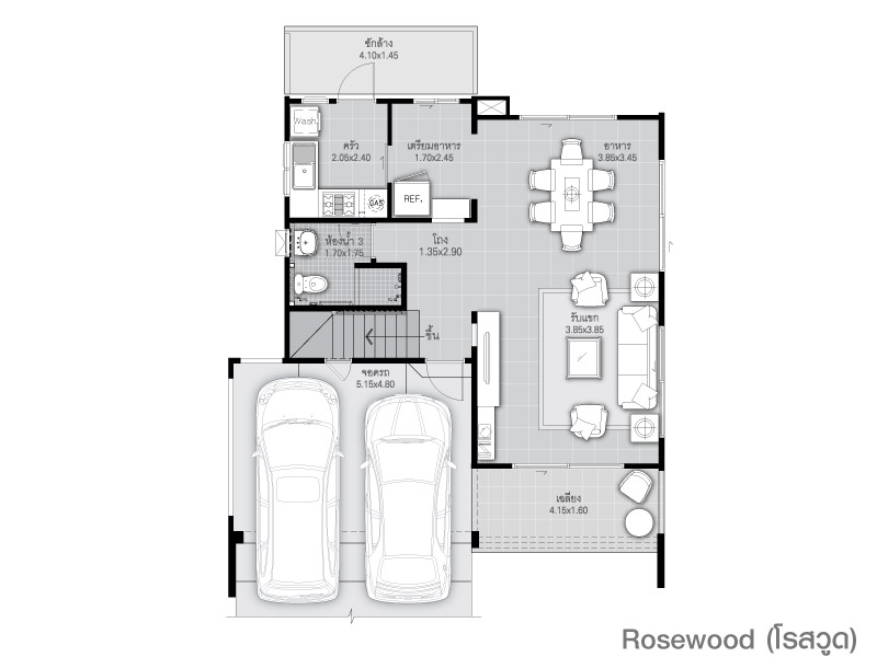 2. Rosewood - บ้านเดี่ยว พื้นที่ใช้สอย 164 ตร.ม. ขนาดที่ดินตั้งแต่ 60 ตร.วา 3 ห้องนอน 3 ห้องน้ำ 1 ห้องครัว 1 ห้องพักผ่อน พร้อมที่จอดรถ 2 คัน