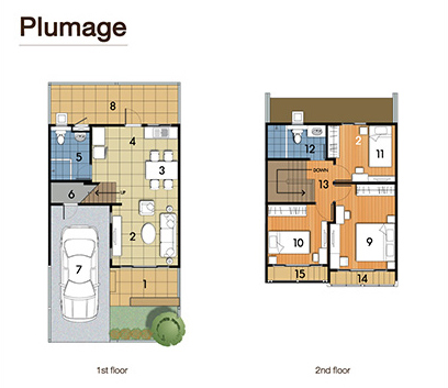 1. PLUMAGE - ทาวน์โฮม 2 ชั้น หน้ากว้าง 6.54 เมตร ขนาดที่ดินเริ่มต้น 20.4 ตร.ว. พื้นที่ใช้สอย 118 ตร.ม. 3 ห้องนอน 2 ห้องน้ำ 1 ที่จอดรถ ราคาเริ่ม 2,540,000 บาท