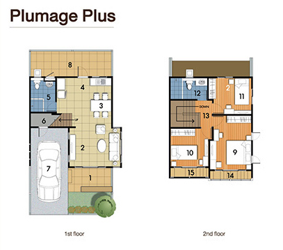 2. PLUMAGE PLUS - ทาวน์โฮม 2 ชั้น หน้ากว้าง 7.2 เมตร ขนาดที่ดินเริ่มต้น 29.1 ตร.ว. พื้นที่ใช้สอย 120 ตร.ม. 3 ห้องนอน 2 ห้องน้ำ 1 ที่จอดรถ ราคาเริ่ม 3,168,800 บาท