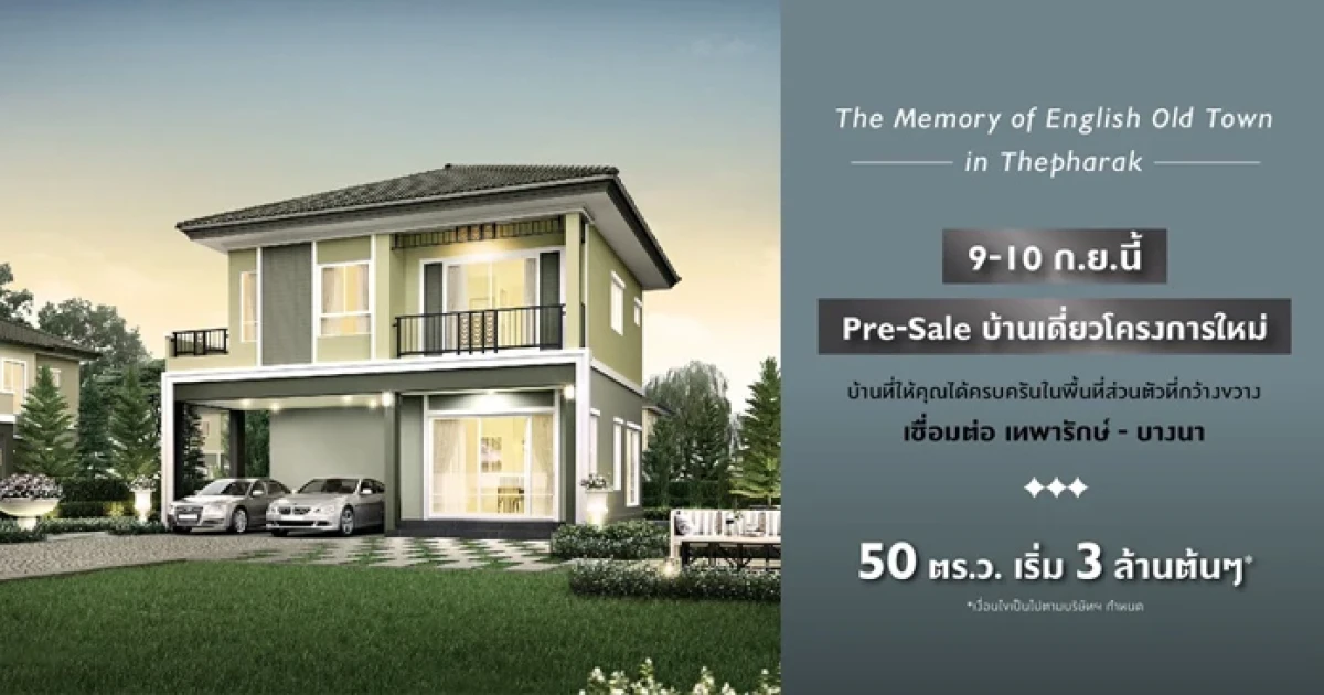 9-10 ก.ย.นี้ เปิดจองบ้านเดี่ยวโครงการใหม่ 50 ตร.ว. บน ถ.เทพารักษ์ เริ่ม 3 ล้านต้นๆ*