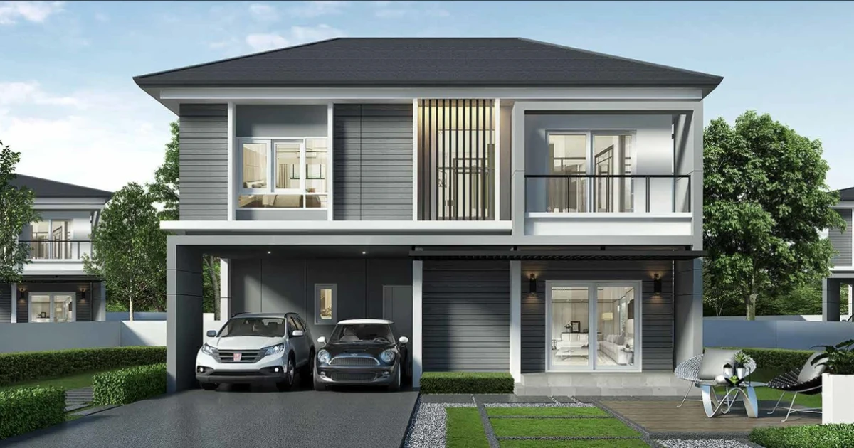 3. แบบบ้าน MAGNITUDE - บ้านเดี่ยว 2 ชั้น พื้นที่ใช้สอย 190 ตร.ม. เนื้อที่ดินเริ่มต้น 50 ตร.วา ขนาด 4 ห้องนอน 3 ห้องน้ำ 2 ห้องนั่งเล่น ที่จอดรถ 2 คัน