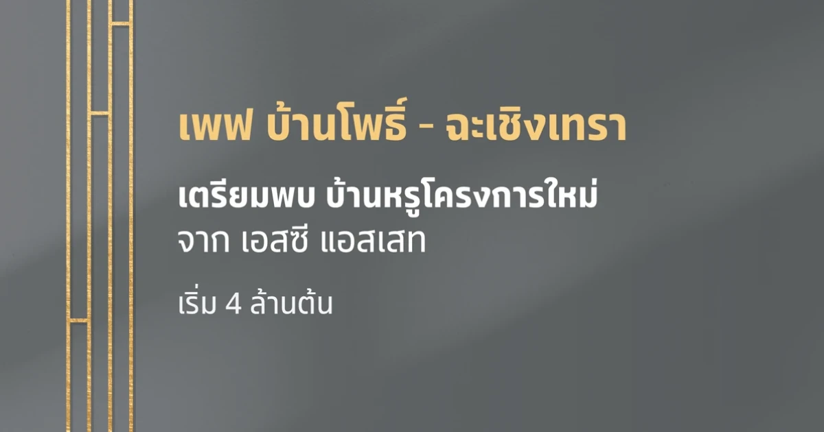 บริษัท เอสซี แอสเสท คอร์ปอเรชั่น จำกัด (มหาชน) เตรียมเปิดตัวบ้านหรูโครงการใหม่ "เพฟ บ้านโพธิ์ - ฉะเชิงเทรา (Pave Baanpoe - Chacherngchao)" โดยเปิดให้ลงทะเบียนรับสิทธิพิเศษก่อนใครได้ที่ลิงก์ด้านล่าง สามารถติดตามอัพเดทข่าวสารของโครงการนี้ได้เช็คราคาดอทคอม