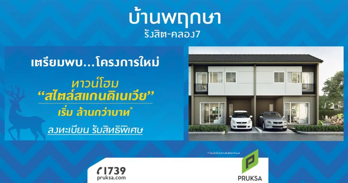 เตรียมพบโครงการใหม่ "บ้านพฤกษา รังสิต-คลอง7" ทาวน์โฮมสไตล์สแกนดิเนเวีย เริ่มล้านกว่าบาท
