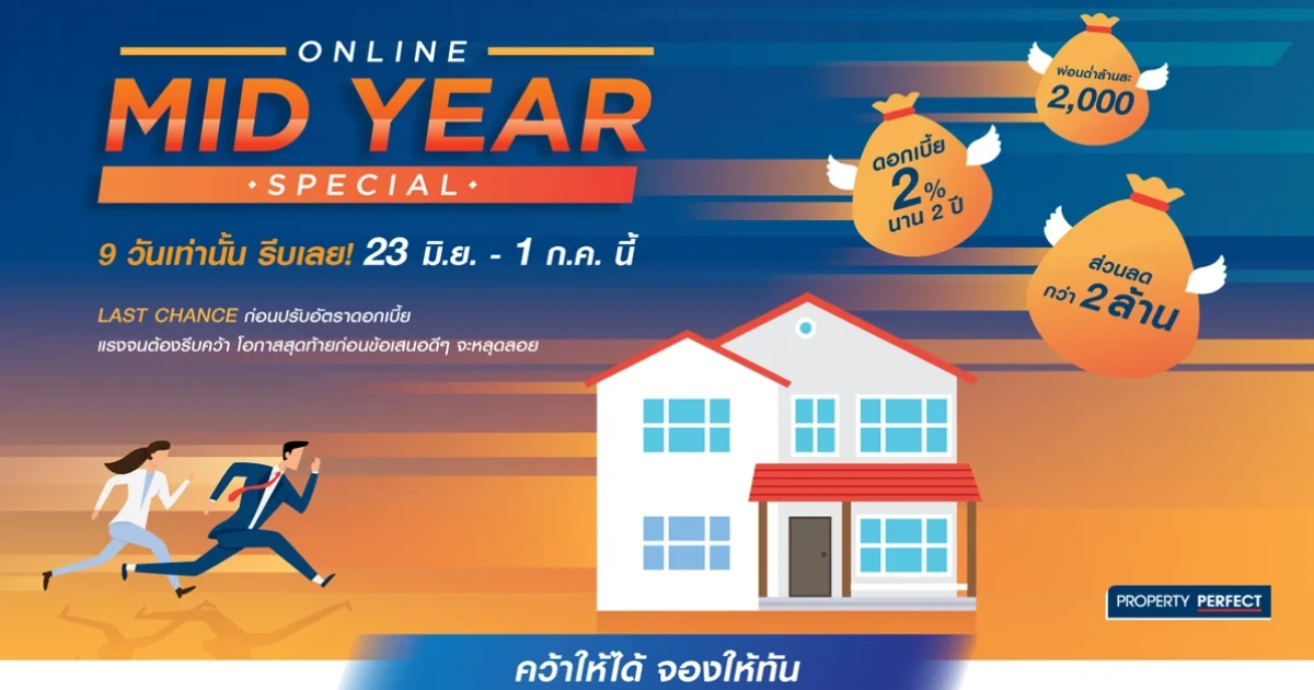 พร็อพเพอร์ตี้ เพอร์เฟค จัดโปร ONLINE MID YEAR SPECIAL 23 มิ.ย. - 1 ก.ค. นี้ 9 วันเท่านั้น รีบเลย!