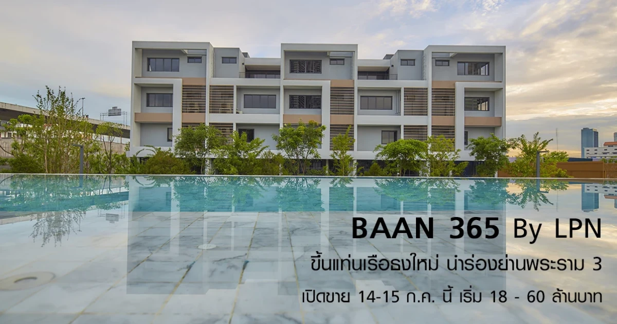 BAAN 365 By LPN ขึ้นแท่นเรือธงใหม่ นำร่องย่านพระราม 3 เปิดขาย 14-15 ก.ค. นี้ เริ่ม 18 - 60 ล้านบาท