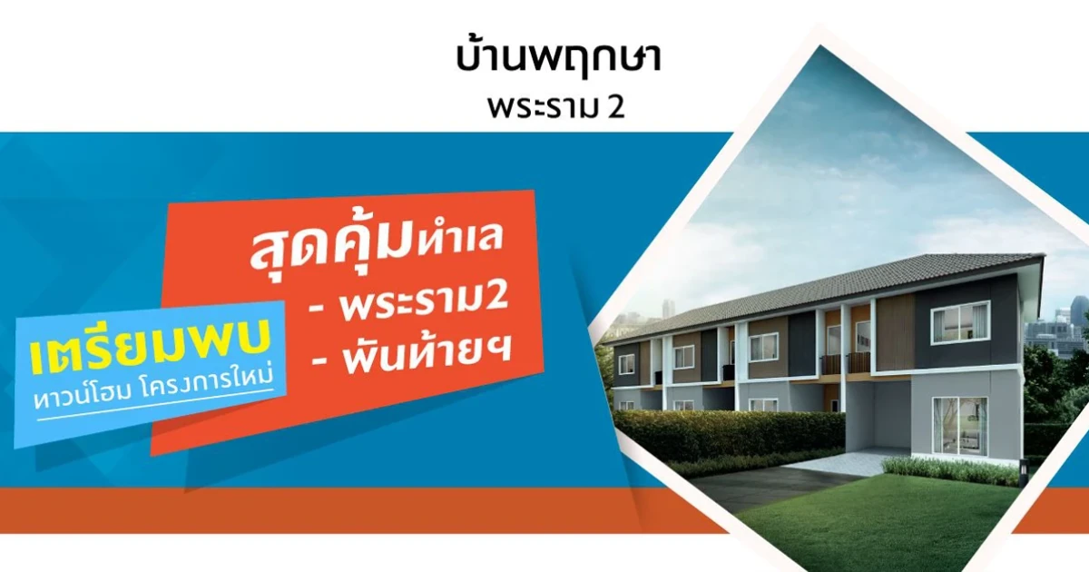 บริษัท พฤกษา เรียลเอสเตท จำกัด (มหาชน) เปิดตัวโครงการใหม่ "บ้านพฤกษา พระราม 2 - พันท้ายนรสิงห์ (Baan Pruksa Rama 2)" ทาวน์โฮมโครงการใหม่ สุดยอดทำเล โซนพระราม 2 คุ้มค่า คุ้มราคา พร้อมนวัตกรรม ''บ้านหายใจได้'' เปิดให้ลงทะเบียนเพื่อรับสิทธิพิเศษที่ลิงก์ด้านล่าง