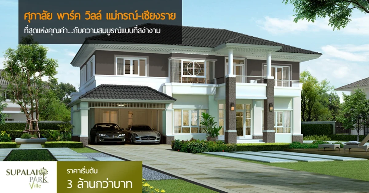 "ศุภาลัย พาร์ควิลล์ แม่กรณ์ - เชียงราย (Supalai Park Ville Maekorn - Chiang Rai)" บ้านสไตล์โมเดิร์น ในสังคมมีระดับ ที่สุดแห่งคุณค่า...กับความสมบูรณ์แบบที่สง่างาม เริ่ม 3 ล้านกว่าบาท *ท่านที่สนใจสามารถลงทะเบียนรับสิทธิพิเศษได้ที่ลิงก์ด้านล่างนี้
