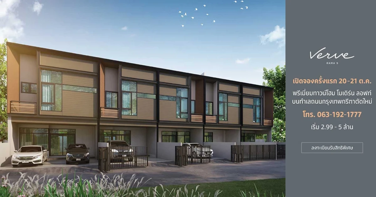 20 - 21 ต.ค. 2561 เปิดจองครั้งแรก พรีเมียมทาวน์โฮมสไตล์ Modern Loft "เวิร์ฟ พระราม 9" บนทำเลถนนกรุงเทพกรีฑาตัดใหม่ *ท่านที่สนใจลงทะเบียนเข้าเยี่ยมชมโครงการได้ที่ลิงก์ด้านล่าง