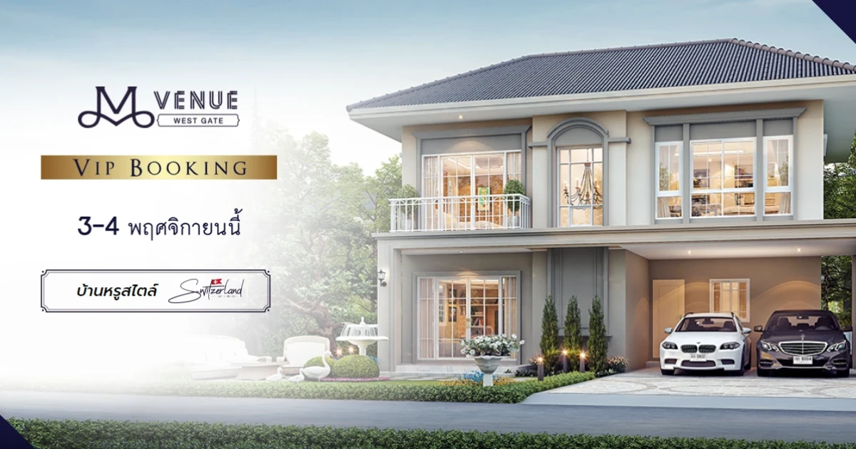 Maison Development เปิดตัวโครงการใหม่ "เอ็ม เวนิว เวสต์เกต (M VENUE West Gate)" บ้านเดี่ยว บ้านแฝด สไตล์ Switzerland บนเทือกเข้าแอลป์สุดคลาสสิก สัมผัสความสง่างามเหนือกาลเวลา โดยจะเปิด VIP Booking วันที่ 3 - 4 พฤศจิกายน 2561 นี้ พร้อมเปิดให้ลงทะเบียนรับส่วนลดเพิ่มเติม 50,000 บาท*