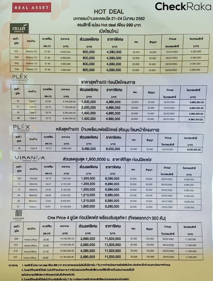 พิเศษ!!! จองซื้อที่อยู่อาศัยภายในงาน ลุ้นรับดีลสุดพิเศษ ไม่ว่าจะเป็น ฟรีผ่อน 1 ปี!, ฟรีดาวน์!, ฟรีโอน!, ฟรีค่าส่วนกลาง!, ฟรีบิวท์อิน!, ฟรีเครื่องใช้ไฟฟ้า! และฟรีเฟอร์นิเจอร์! ที่ยกขบวนพาเหรดมาให้เลือกสรรแบบไม่อั้น สนใจจองซื้อภายในงาน รับทันทีคูปองเพื่อใช้ลุ้นรับรางวัลทั้ง 7 ดีล มูลค่ารวมมากกว่า 1 ล้านบาท ผู้ที่สนใจมองหาที่อยู่อาศัยต้นปี ดีลดีๆ แบบนี้พลาดไม่ได้!!