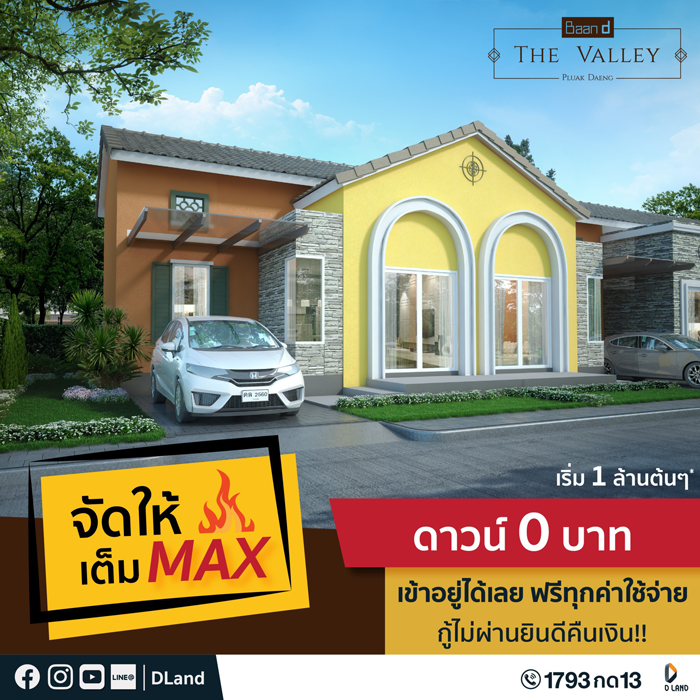 ไม่พอ บอสใหญ่อย่าง ศิริพงษ์ สมบูรณ์ กรรมการผู้จัดการ บริษัท ดี-แลนด์ กรุ๊ป จำกัด ยังใจป้ำ กระซิบบอกใครที่กู้ไม่ผ่านยินดีคืนเงิน!! อย่าร้อช้า! ท่านใดสนใจบ้าน ไลฟ์สไตล์ "ทัสคานี" ตามแบบฉบับอิตาลี โอบล้อมด้วยสัมผัสของธรรมชาติ และวิวเนินเขา กับโครงการ บ้านดีเดอะวัลเล่ย์ ปลวกแดง - ระยอง