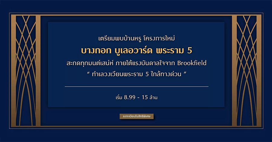 เตรียมพบบ้านหรู โครงการใหม่ "บางกอก บูเลอวาร์ด พระราม 5" เริ่ม 8.99 - 15 ล้านบาท ลงทะเบียนรับสิทธิพิเศษ