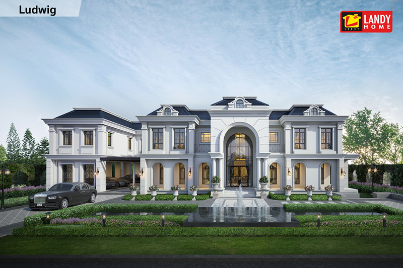 LUDWIG - มีขนาดพื้นที่ใช้สอยรวม 1,545 ตร.ม. ขนาดอาคาร 32x25 ม. เหมาะสำหรับที่ดินหน้ากว้าง ขนาด 261 ตร.ว. เป็นบ้าน 2 ชั้น สไตล์ Neo Classic เรียบหรูไม่ซ้ำใคร 5 ห้องนอน 6 ห้องน้ำ 4 ที่จอดรถ ออกแบบวางผังตัวบ้านเป็นรูปตัวยู สามารถเชื่อมทุกพื้นที่ถึงกันได้อย่างสะดวกสบาย ราคาก่อสร้างอยู่ที่ 40 ล้านบาทขึ้นไป