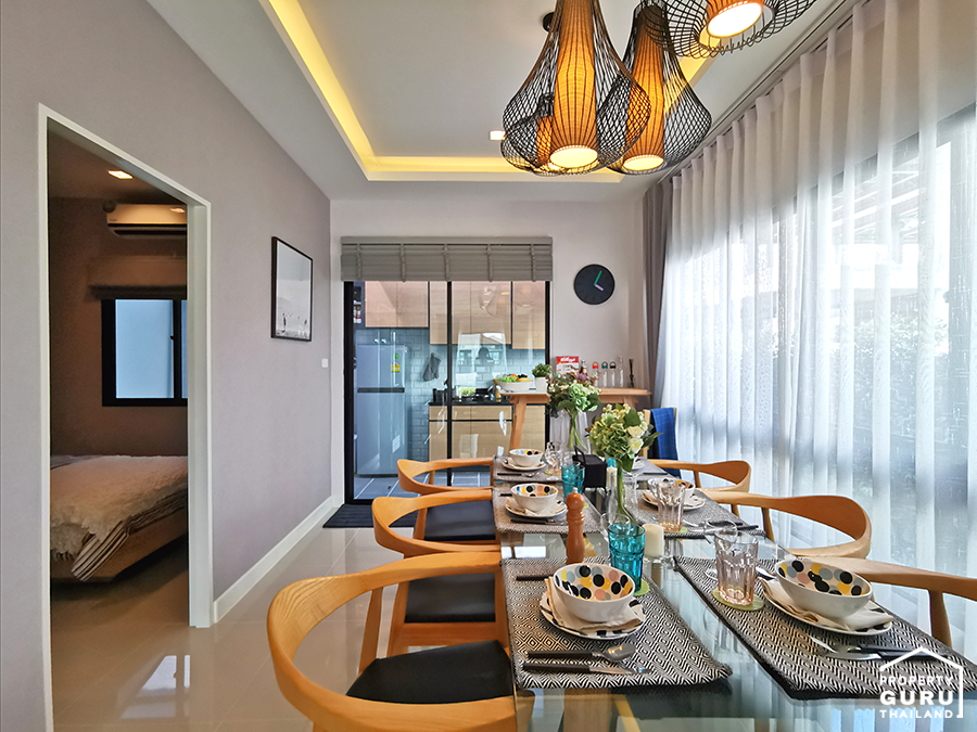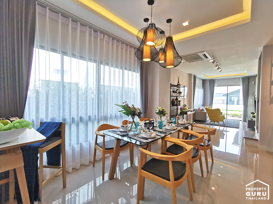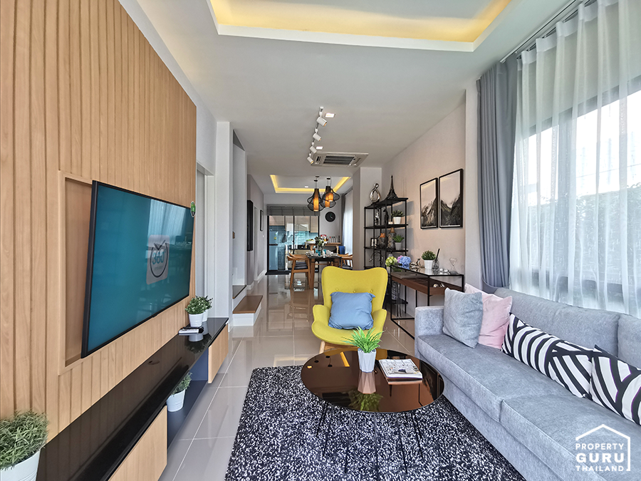 สำหรับการออกแบบภายในบ้านยังนำแนวคิด Made From Her ที่ใส่ใจทุกรายละเอียดมาปรับใช้ในฟังก์ชันต่างๆ ภายในบ้าน ด้วยพื้นที่สอยใช้ 138 ตารางเมตร กว้างเทียบเท่าบ้านเดี่ยว บริเวณชั้นล่างห้องอเนกประสงค์สามารถปรับเปลี่ยนได้ตามความต้องการของผู้อยู่อาศัย ตอบโจทย์สำหรับคนที่ Work From Home หรือปรับห้องเพื่อรองรับผู้สูงอายุได้ในอนาคต ส่วนชั้นบนแบ่งเป็นห้องนอนใหญ่ 3 ห้องนอน กั้นเป็นสัดส่วนลงตัว โล่ง โปร่ง สบาย รองรับการพักผ่อนอย่างเต็มที่พร้อม Walk in - Closet ส่วนระบบการก่อสร้างโครงการใช้อิฐมอญแดงทุกหลัง มั่นใจแข็งแรง คงทนและปลอดภัย บันไดคอนกรีตเสริมเหล็ก ไร้เสียงเวลาเดินและหมดกังวลเรื่องปลวก